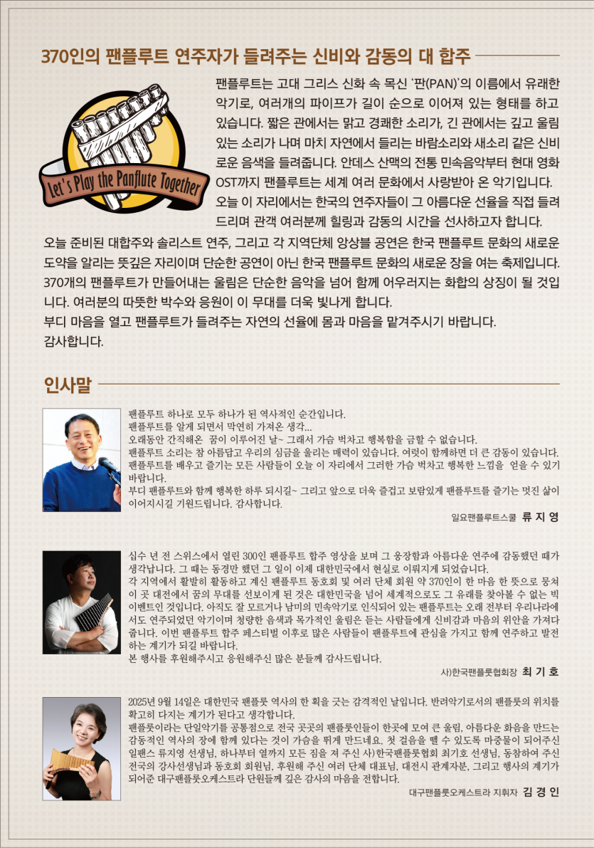 대한민국 팬플루트 합주 페스티벌 안내